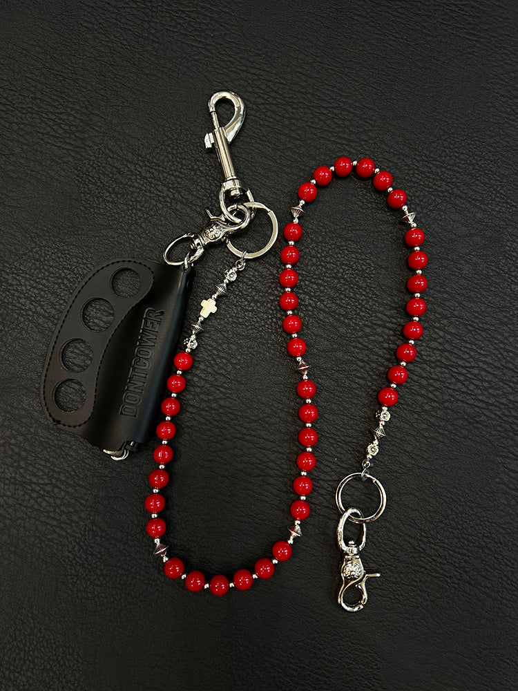 Style: Red Ball Wallet Chain Ball Pants Chain Agate Beaded Wallet Chain Bead Wallet Chain