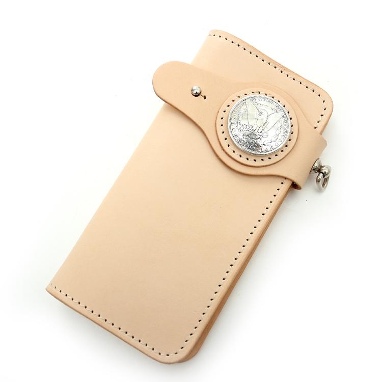 Design: Handmade Beige Long Biker Wallet with Chain Cool Mens Leather Biker Chain Wallet