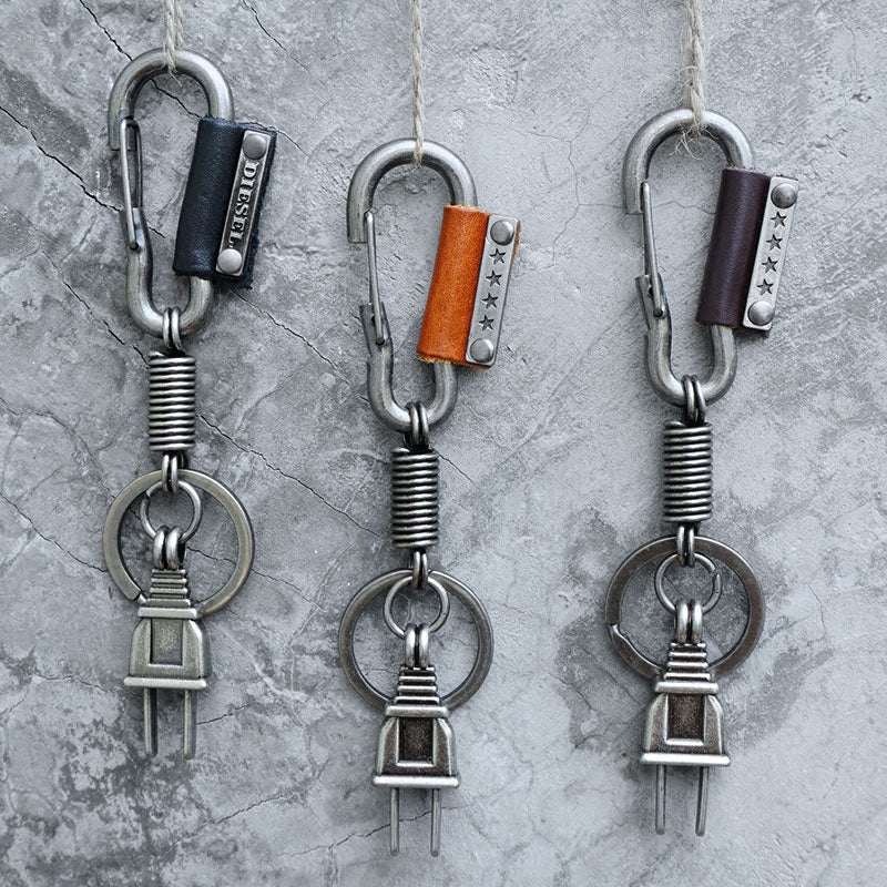 Design: Handmade Biker Trucker Plug Motorcycle Cool Key Ring Keychain Fob Leather Braided Keychain