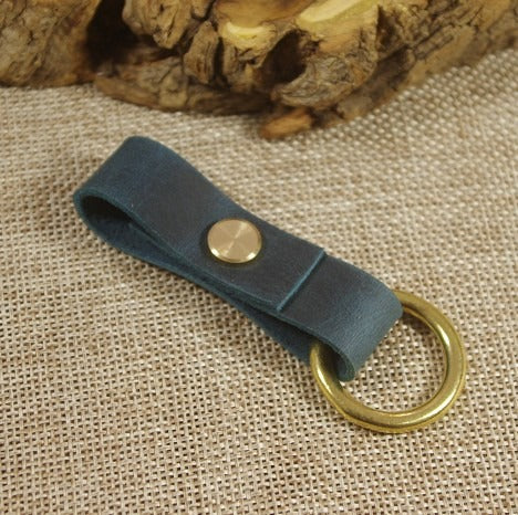 Style: Handmade Blue Leather Keychain Key Holder Minimalist Leather Car Key Ring for Men