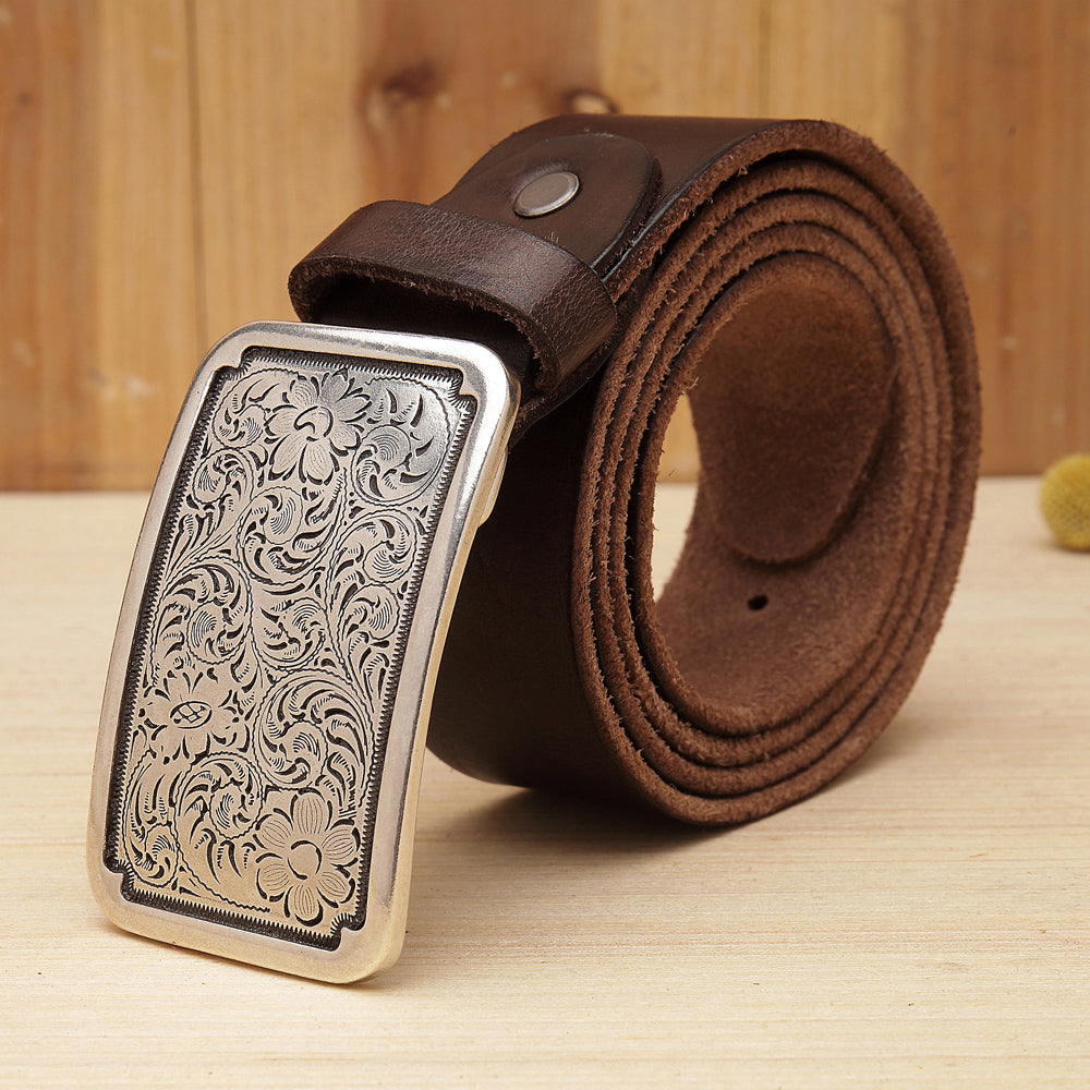 A leather belt with a pattern carving buckle offers a blend of style and functionality, making it a versatile accessory for both men and women. Measuring 3.8cm in width, this belt strikes the perfect balance between durability and elegance, suitable for various occasions and outfits. The vintage style of this belt adds a timeless charm, making it a staple piece for those who appreciate classic fashion.