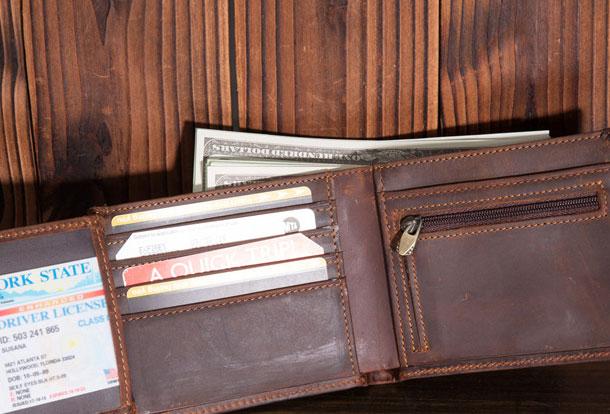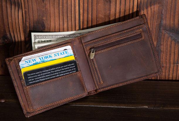 Style: Handmade Genuine Leather Wallet billfold Leather Wallet Slim Bifold Wallet Wristlet Bag For Women
