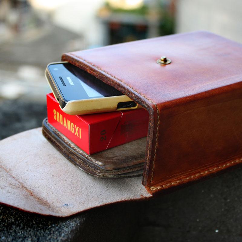 Design: Handmade Leather Belt Pouch Mens Waist Bag CIGARETTE Pouch for Men