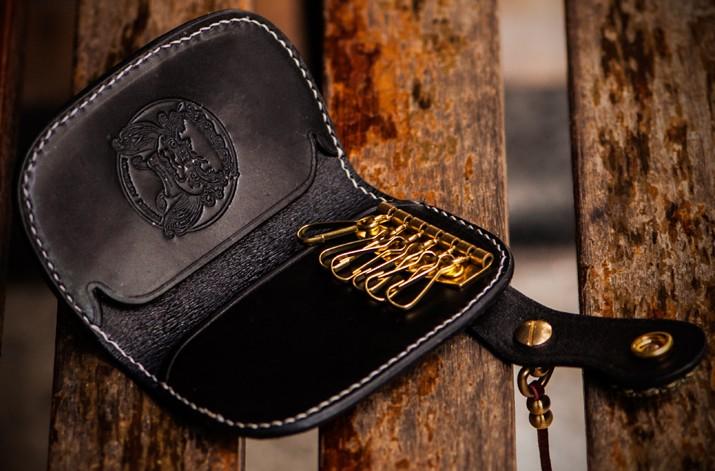 Style: Handmade Leather Tooled Mens Cool Car Key Wallet Coin Wallet Pouch Car KeyChain for Men