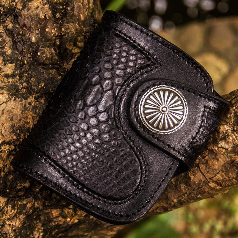 Style: Handmade Leather Biker billfold Wallet Mens Cool Chain Wallet Trucker Wallet with Chain