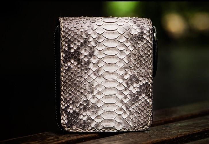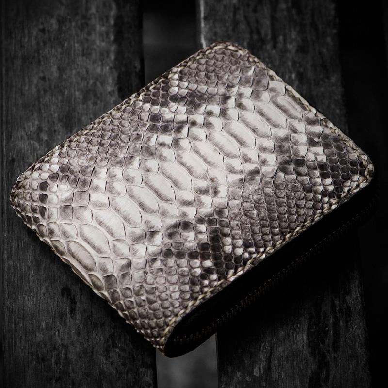Handmade Leather Boa Skin Tooled Mens billfold Wallet Cool Slim Wallet Biker Wallet for Men