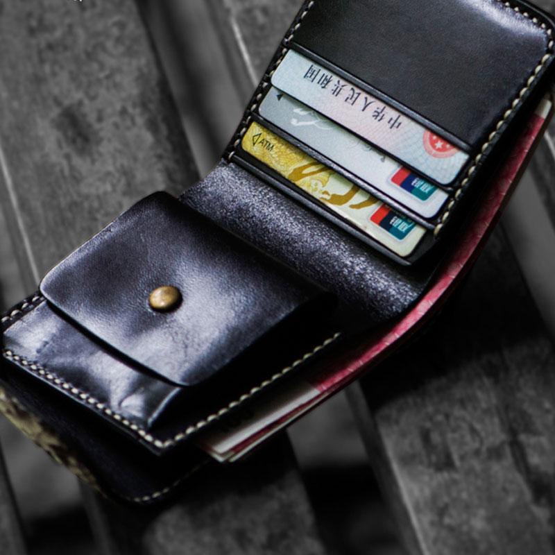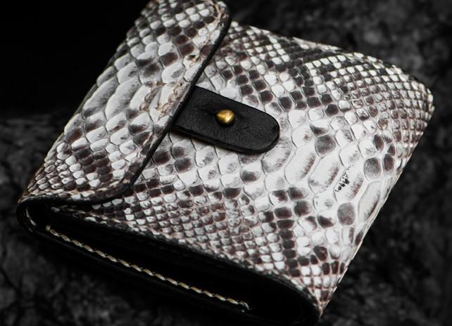 Design: Handmade Leather Boa Skin Tooled Mens billfold Wallet Cool Slim Wallet Biker Wallet for Men
