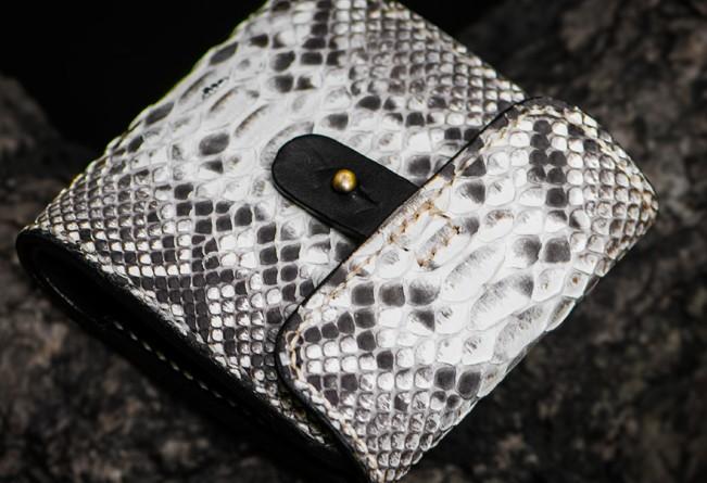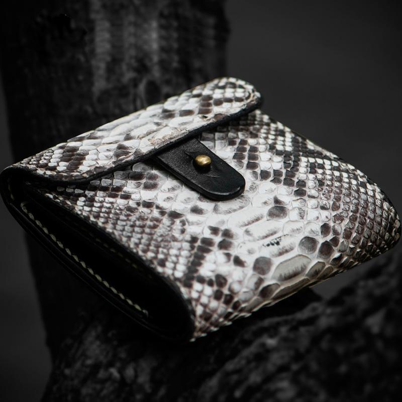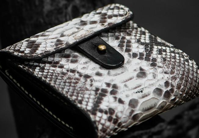 Style: Handmade Leather Boa Skin Tooled Mens billfold Wallet Cool Slim Wallet Biker Wallet for Men