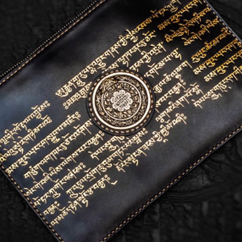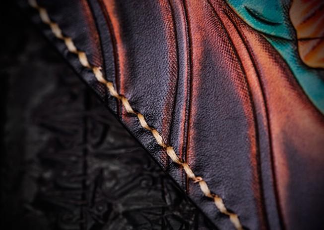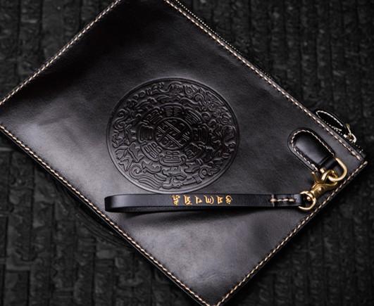 Handmade Leather Carp Tooled Wristlet Bag iPad Bag Mens Cool Leather Long Clutches for Men