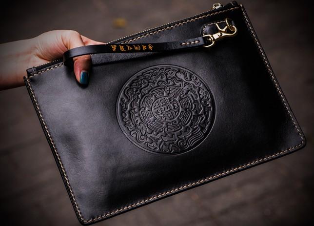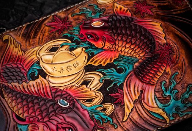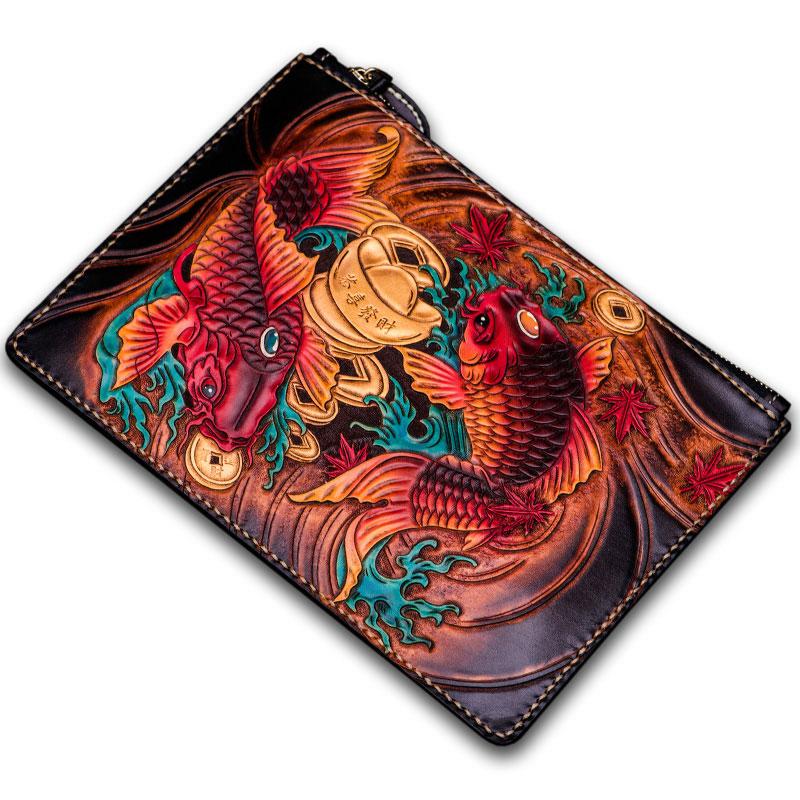 Design: Handmade Leather Carp Tooled Wristlet Bag iPad Bag Mens Cool Leather Wallet Long Clutch for Men
