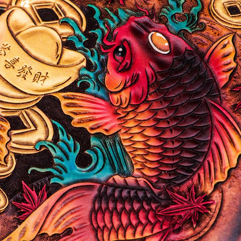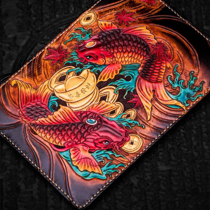 Style: Handmade Leather Carp Tooled Wristlet Bag iPad Bag Mens Cool Leather Wallet Long Clutch for Men