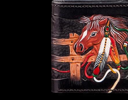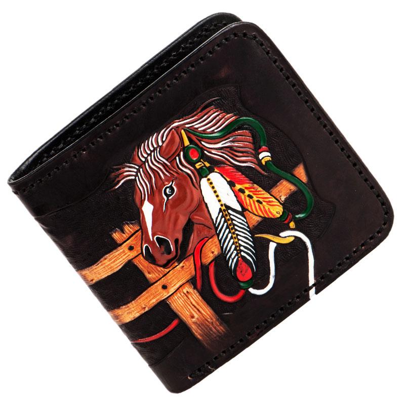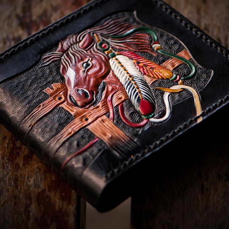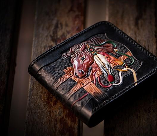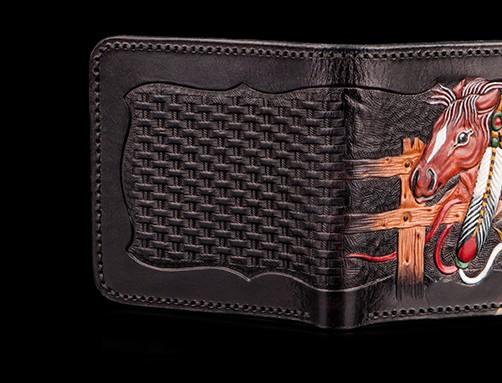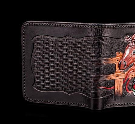 Design: Handmade Leather Fine Horse Tooled Mens billfold Wallet Cool Leather Wallet Slim Wallet for Men