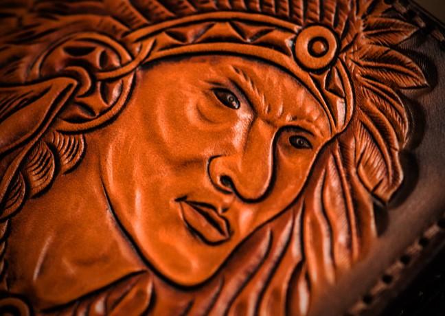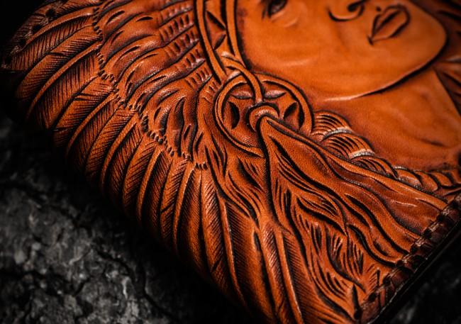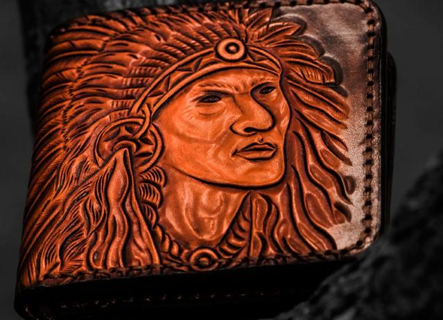 Design: Handmade Leather Indian Chief Tooled Mens billfold Wallet Cool Leather Wallet Slim Wallet for Men