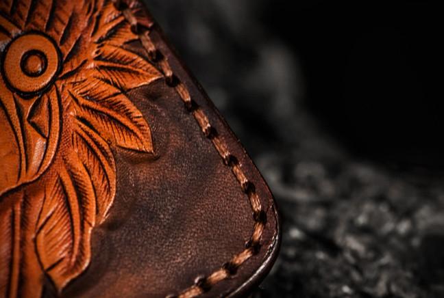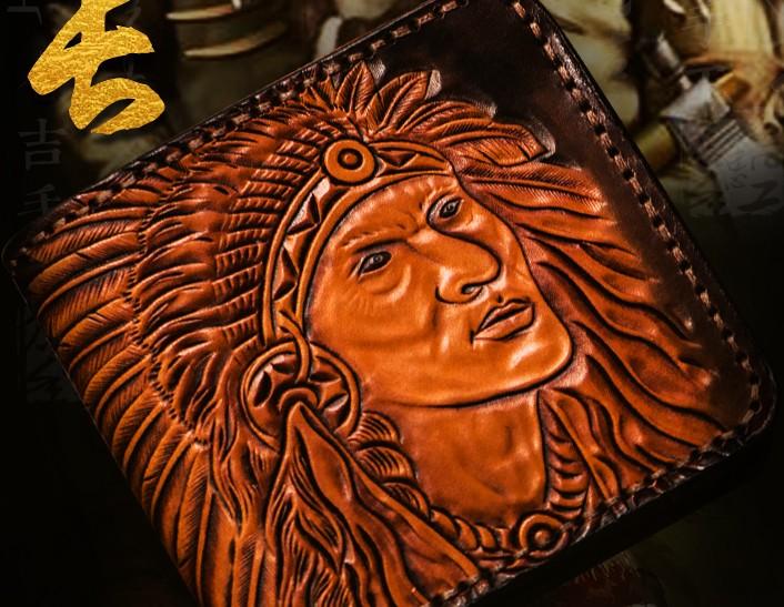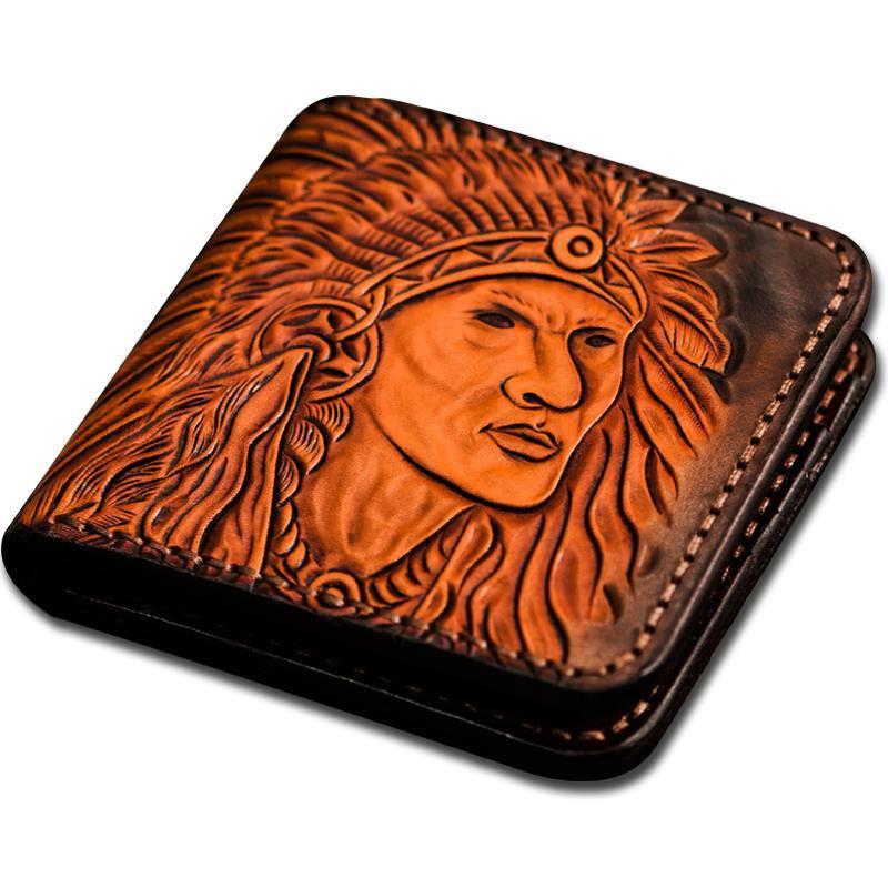 Style: Handmade Leather Indian Chief Tooled Mens billfold Wallet Cool Leather Wallet Slim Wallet for Men