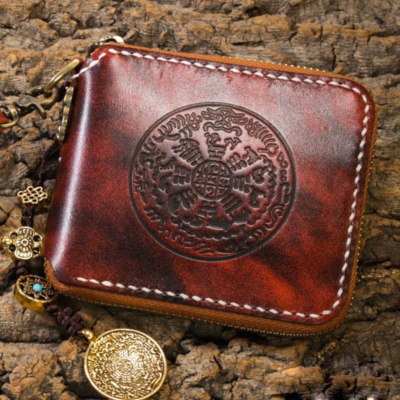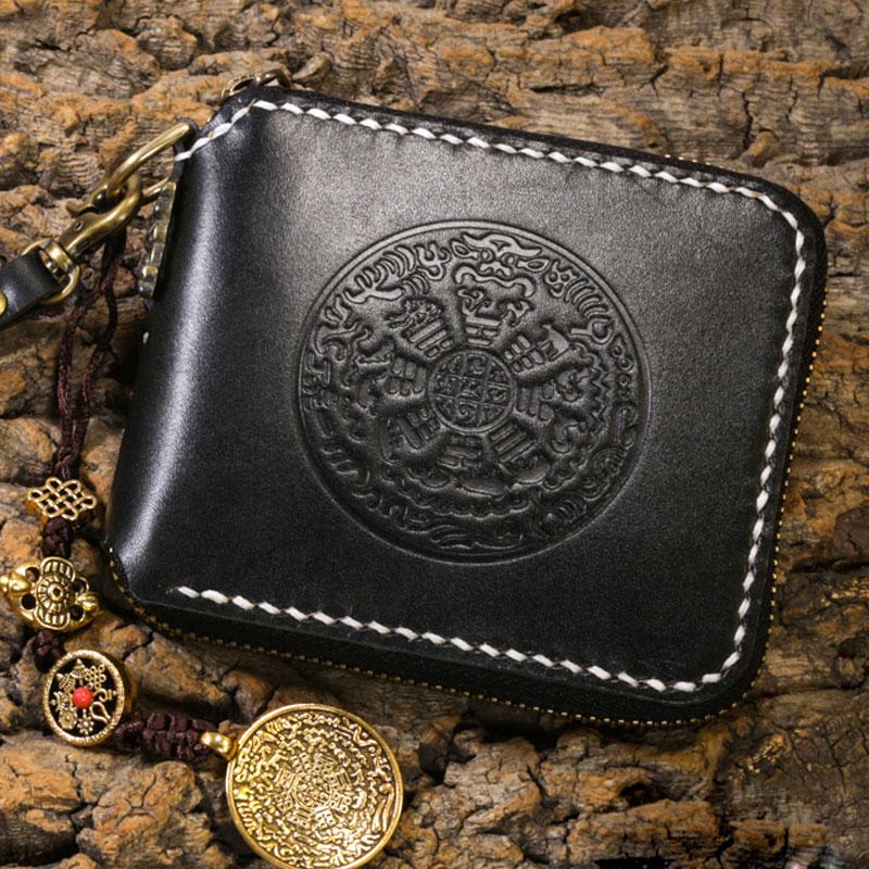 Design: Handmade Leather Mens Chain Biker Wallet Cool Leather Wallet Small Wallets for Men