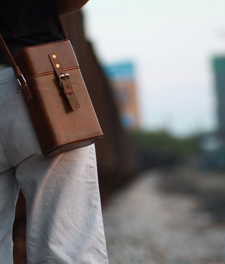 Design: Handmade Leather Mens Small Box Bag Shoulder Bag Messenger Bag for Men
