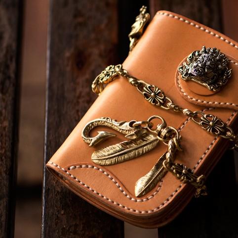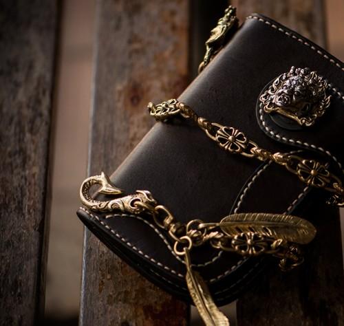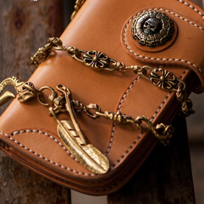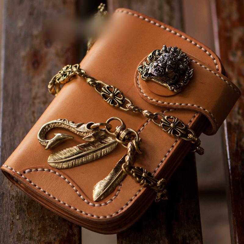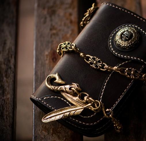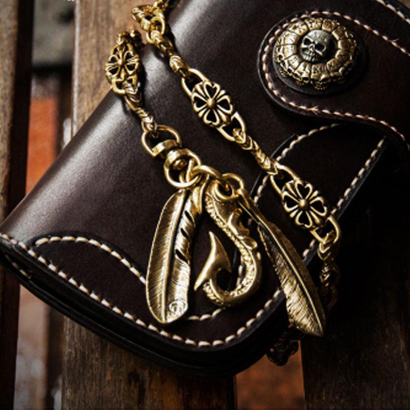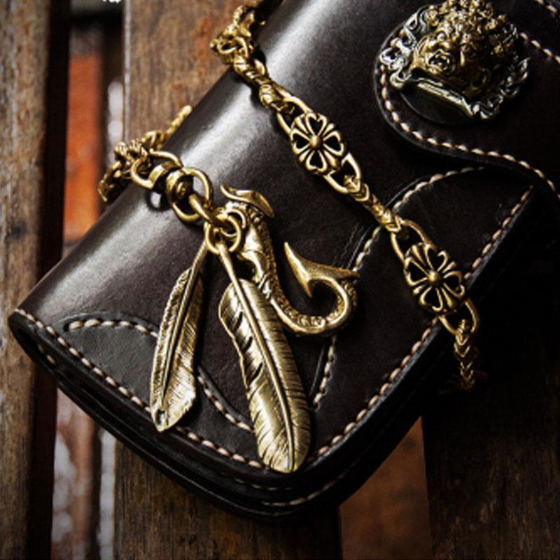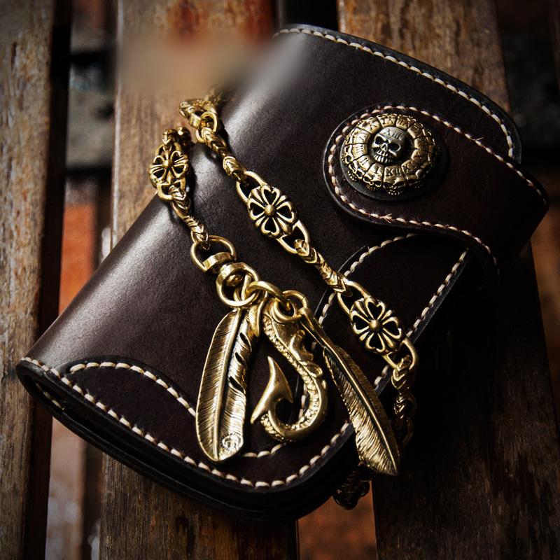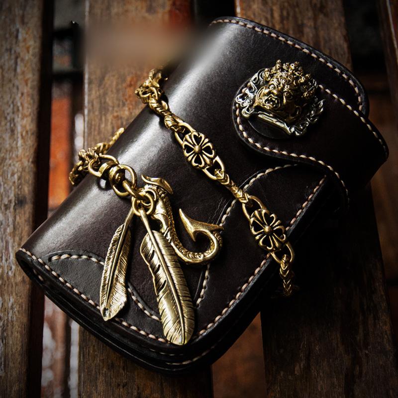 Design: Handmade Leather Carp Mens Chain Biker Wallet Cool Leather Wallet With Chain Wallets for Men