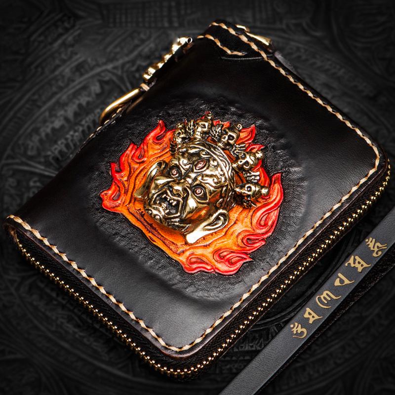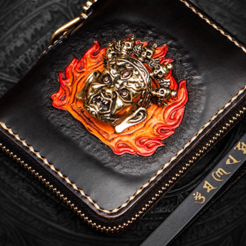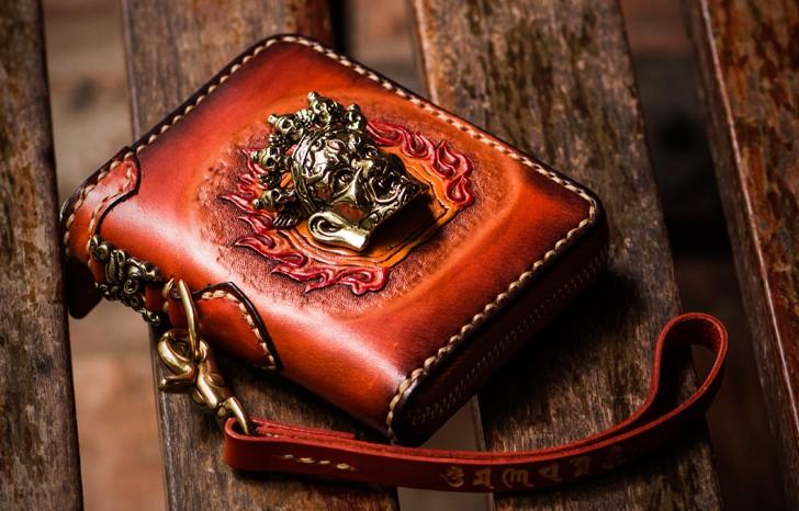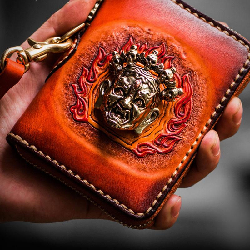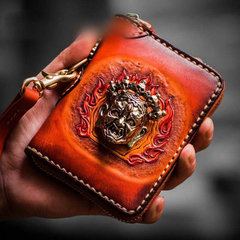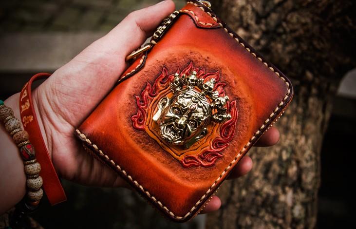 Design: Handmade Leather Tibetan Mens billfold Wallet Cool Chain Wallet Biker Wallet for Men