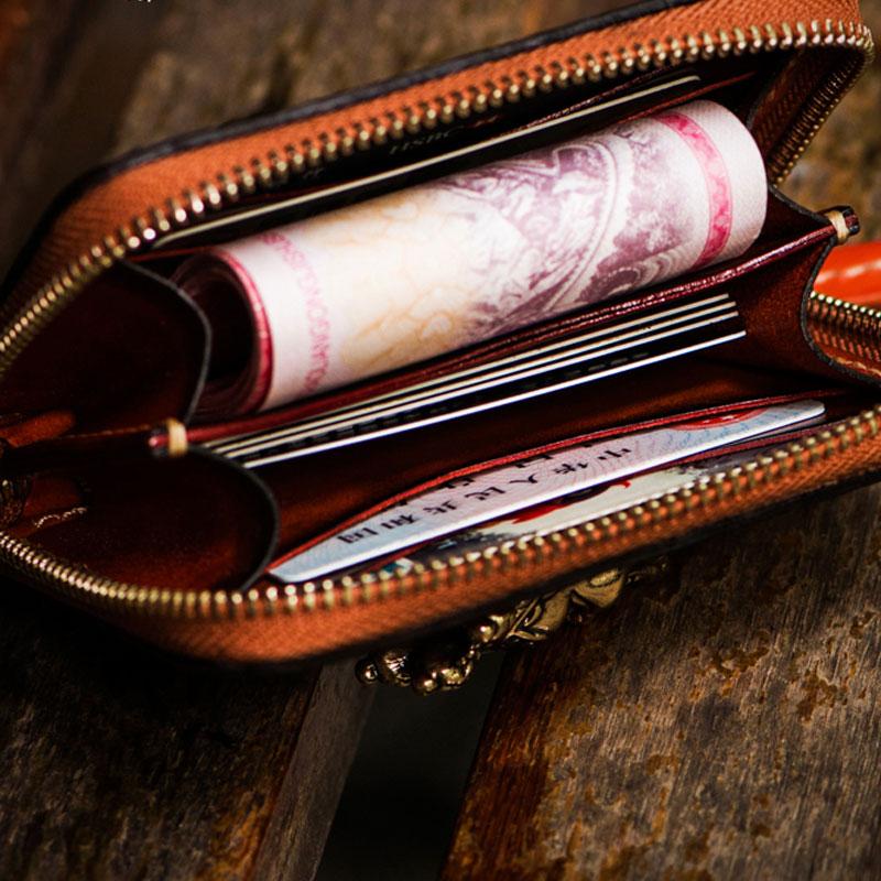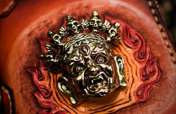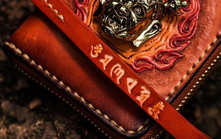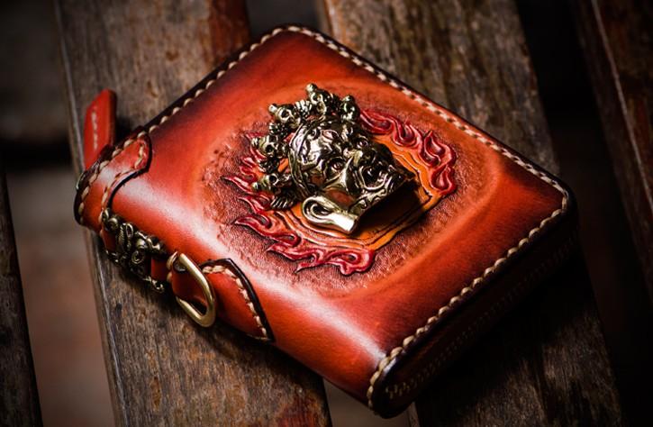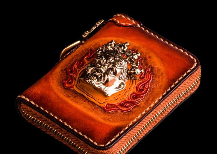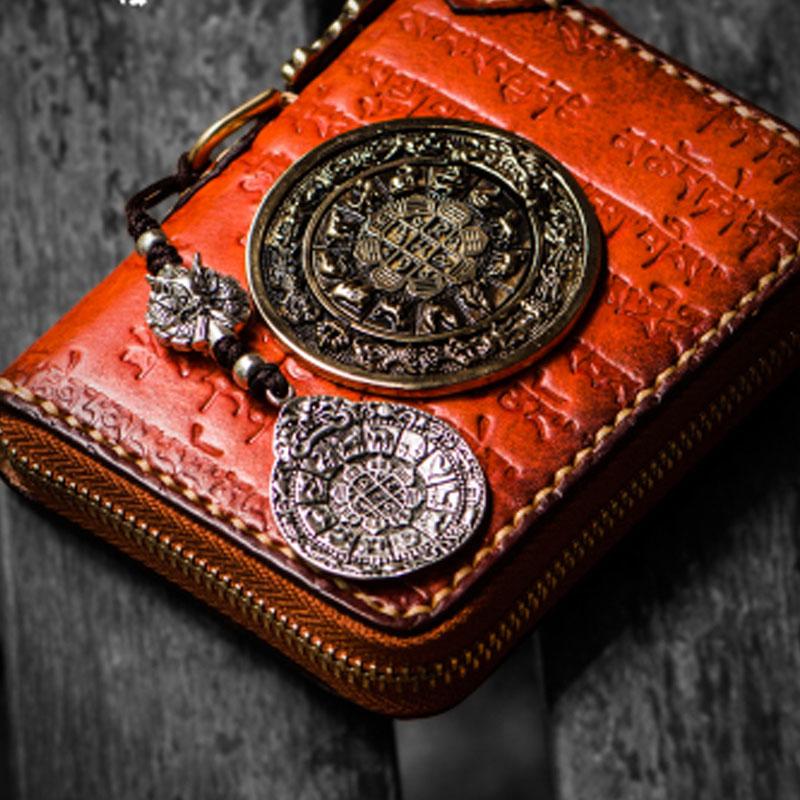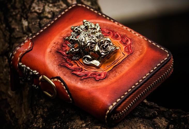 Design: Handmade Leather Tibetan Mens billfold Wallet Cool Chain Wallet Biker Wallet for Men