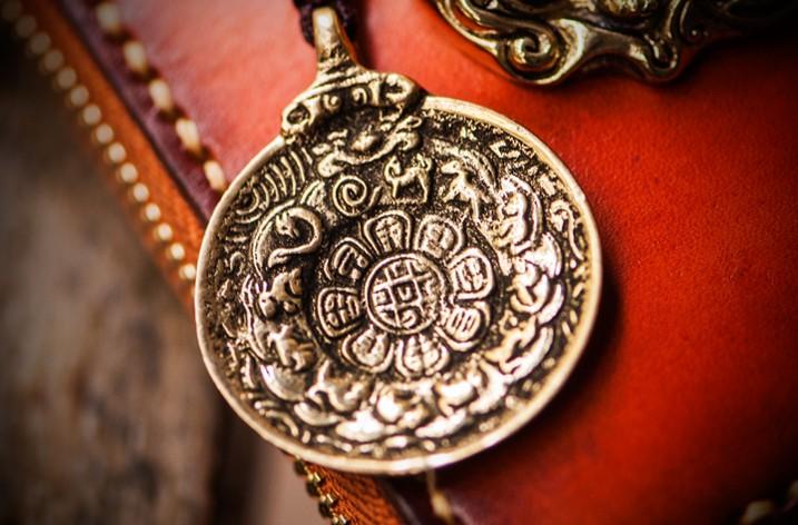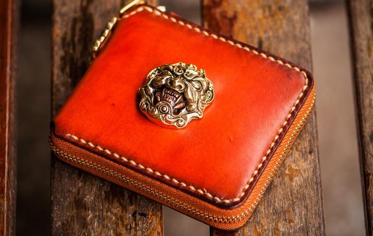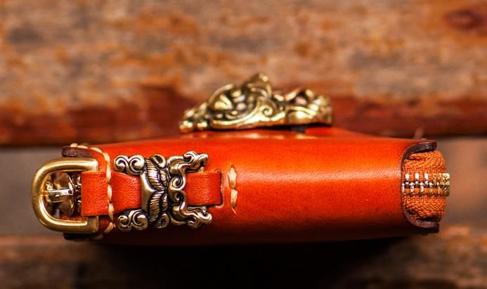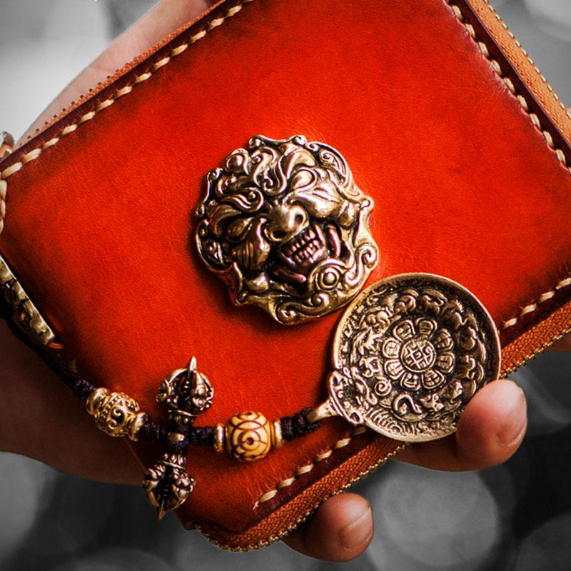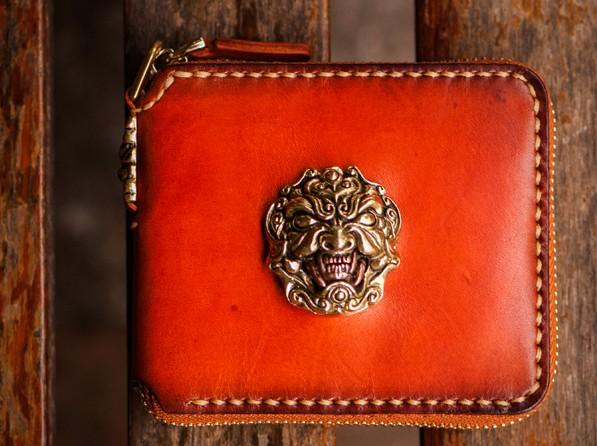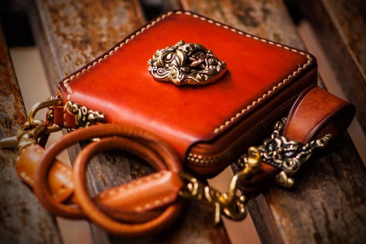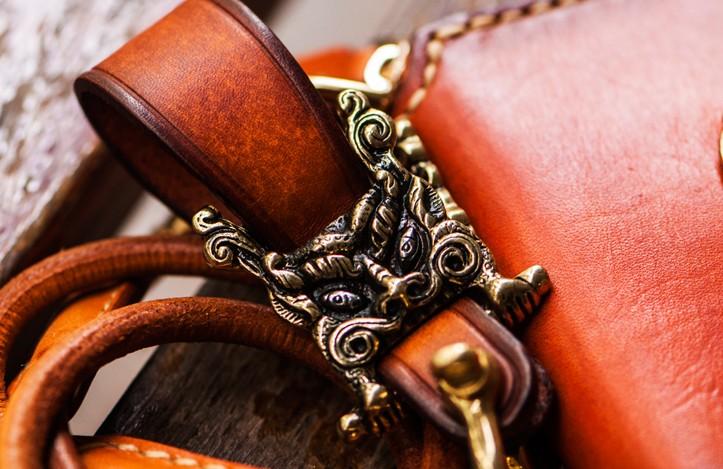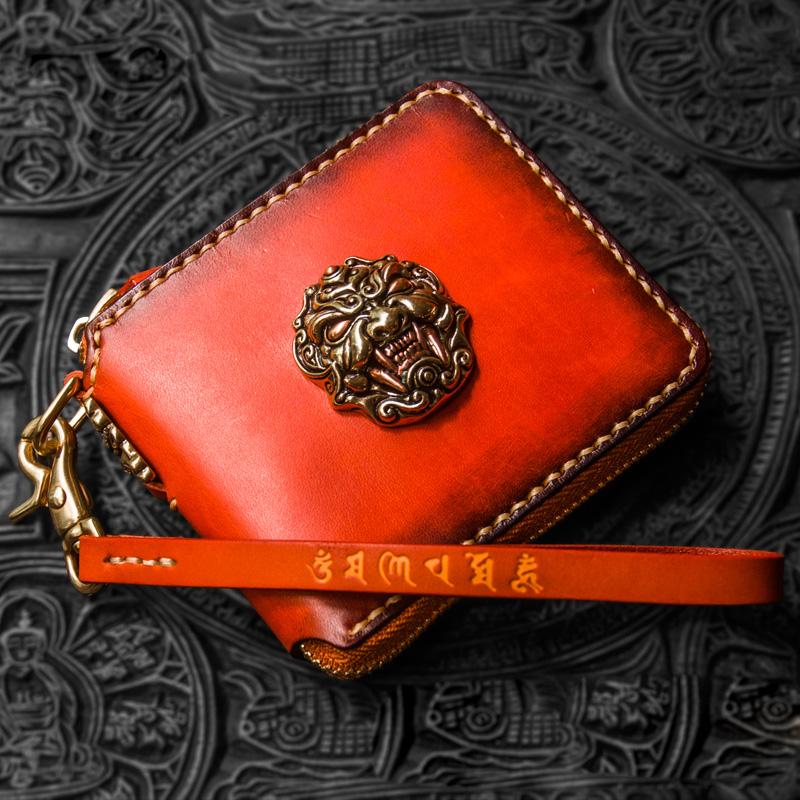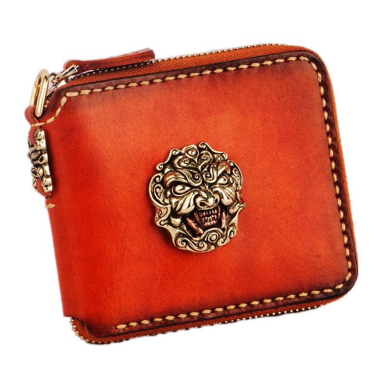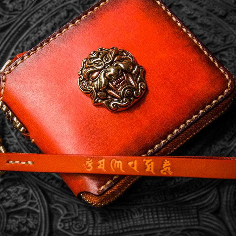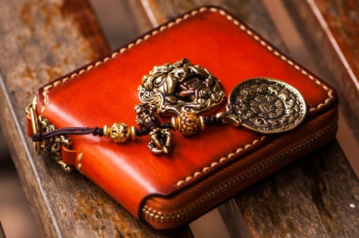 Design: Handmade Leather Tibetan Tooled Mens billfold Wallet Cool Chain Wallet Biker Wallet for Men