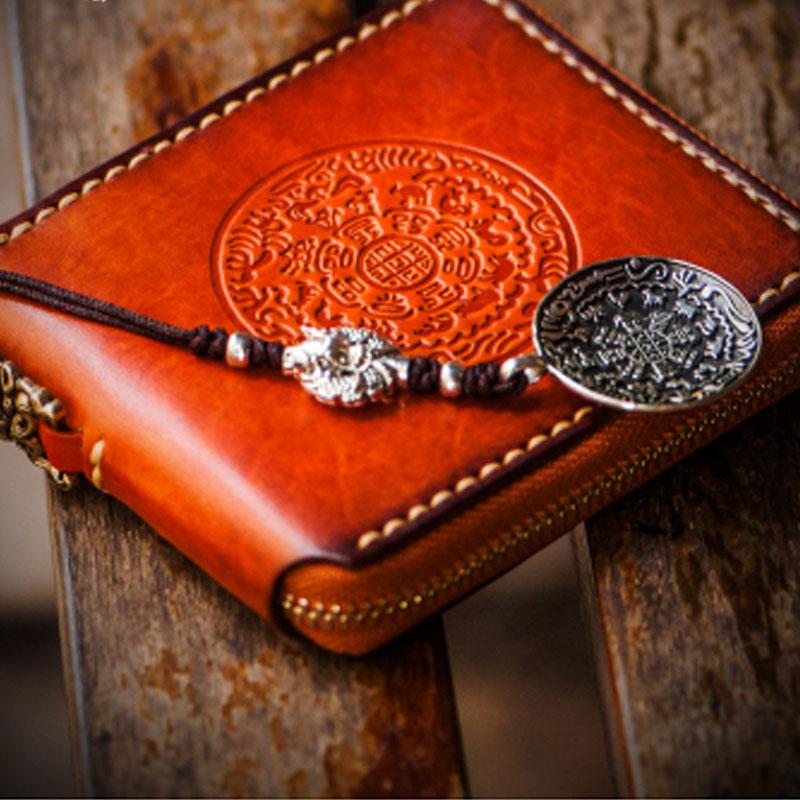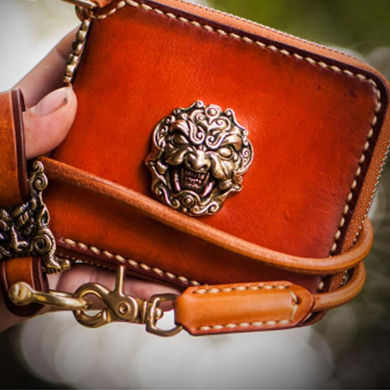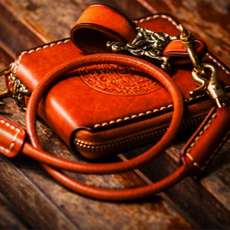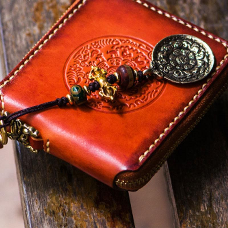 Handmade Leather Tibetan Tooled Mens billfold Wallet Cool Small Chain Wallet Biker Wallet for Men