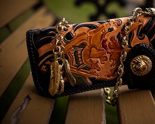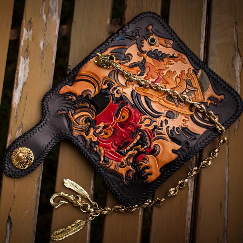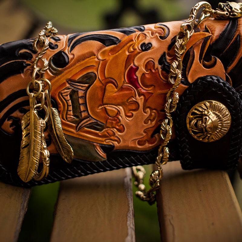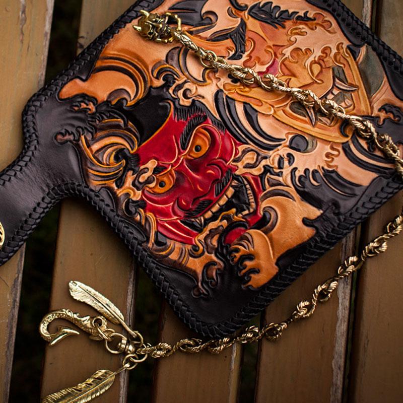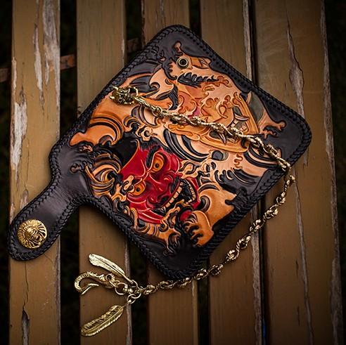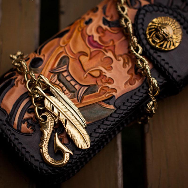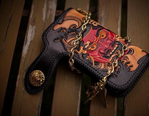 Design: Handmade Leather Tooled Prajna Mens Chain Biker Wallet Cool Leather Wallet With Chain Wallets for Men
