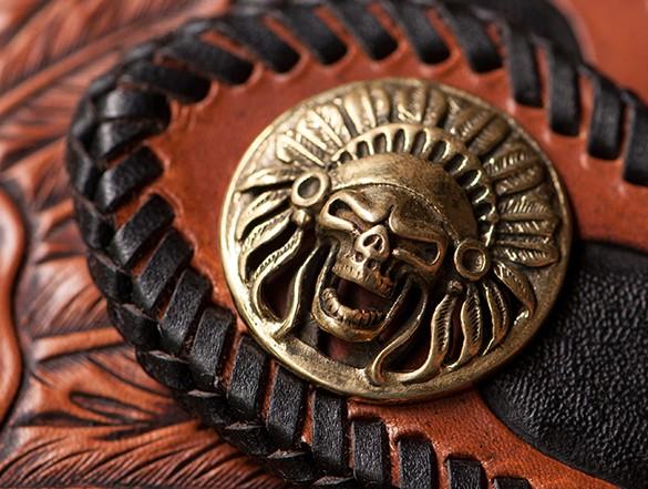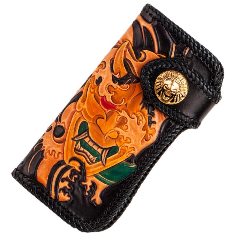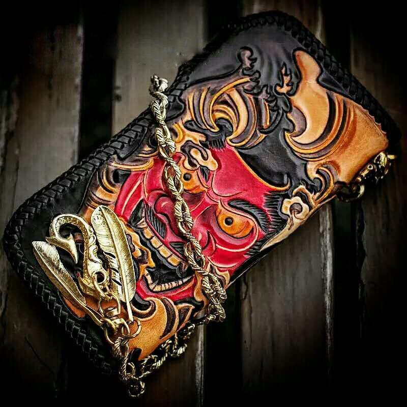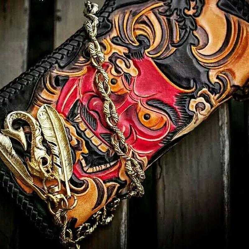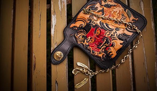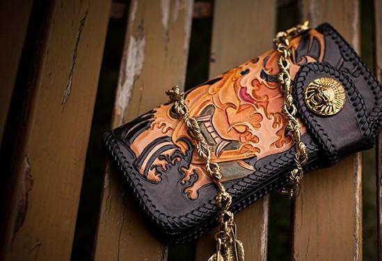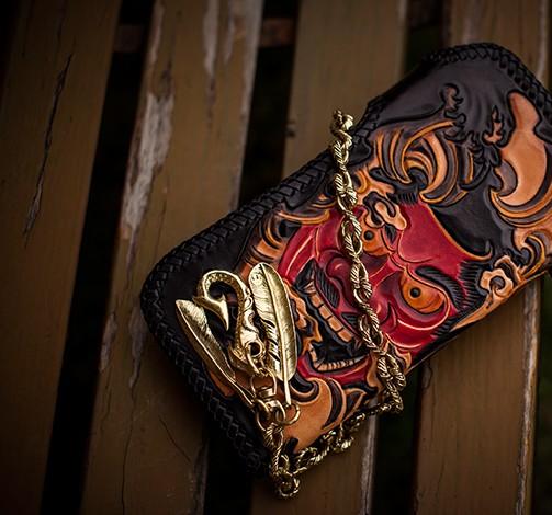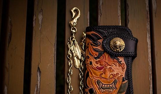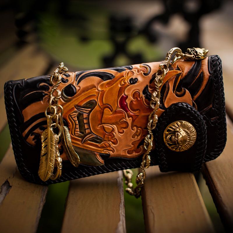 Design: Handmade Leather Tooled Prajna Mens Chain Biker Wallet Cool Leather Wallet With Chain Wallets for Men