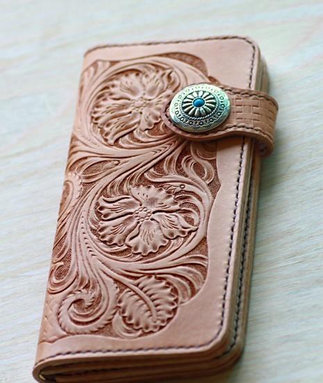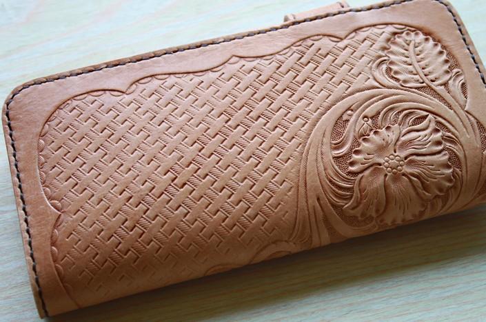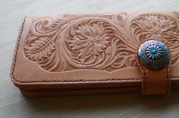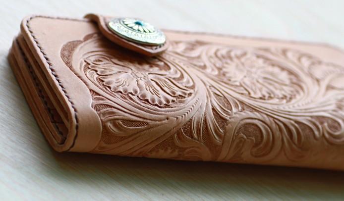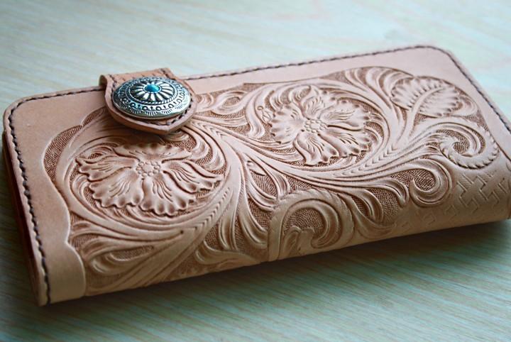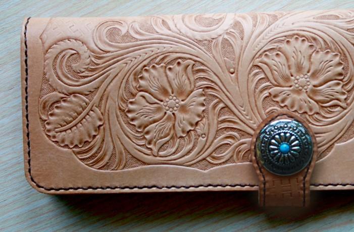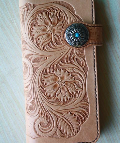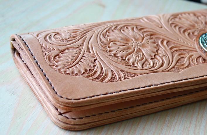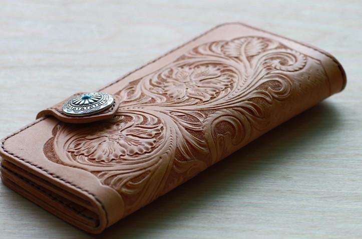 Design: Handmade Tooled Floral Mens Leather Long Biker Wallet Cool Long Chain Wallet for Men