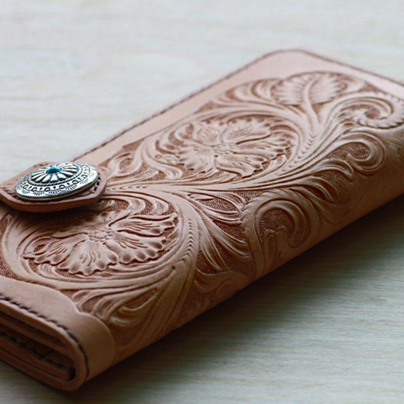Style: Handmade Tooled Floral Mens Leather Long Biker Wallet Cool Long Chain Wallet for Men