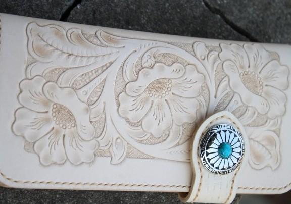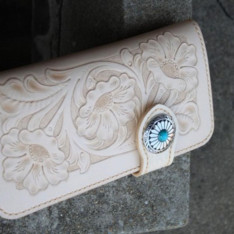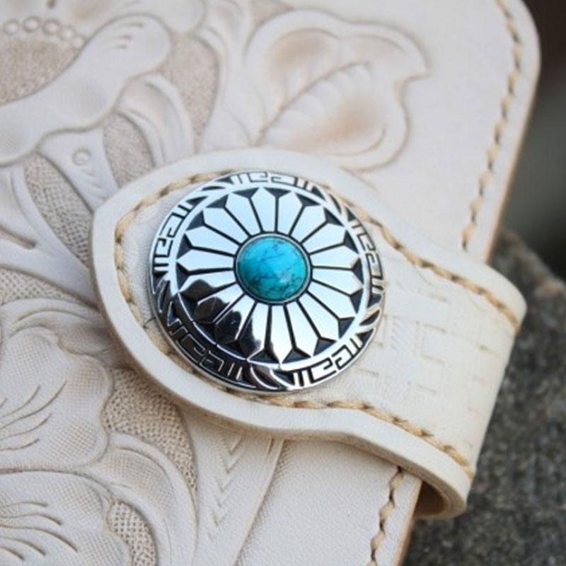 Style: Handmade Mens Tooled Floral Leather Chain Wallet Cool Biker Wallet with Chain