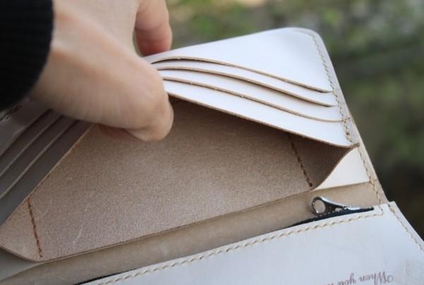 Slots: 2 full size bill slots, 6 card holders, 1 zipper slot