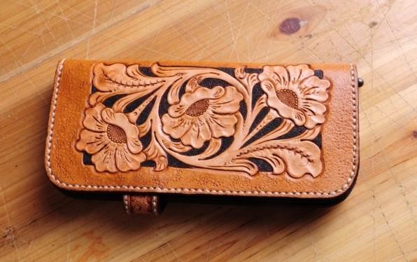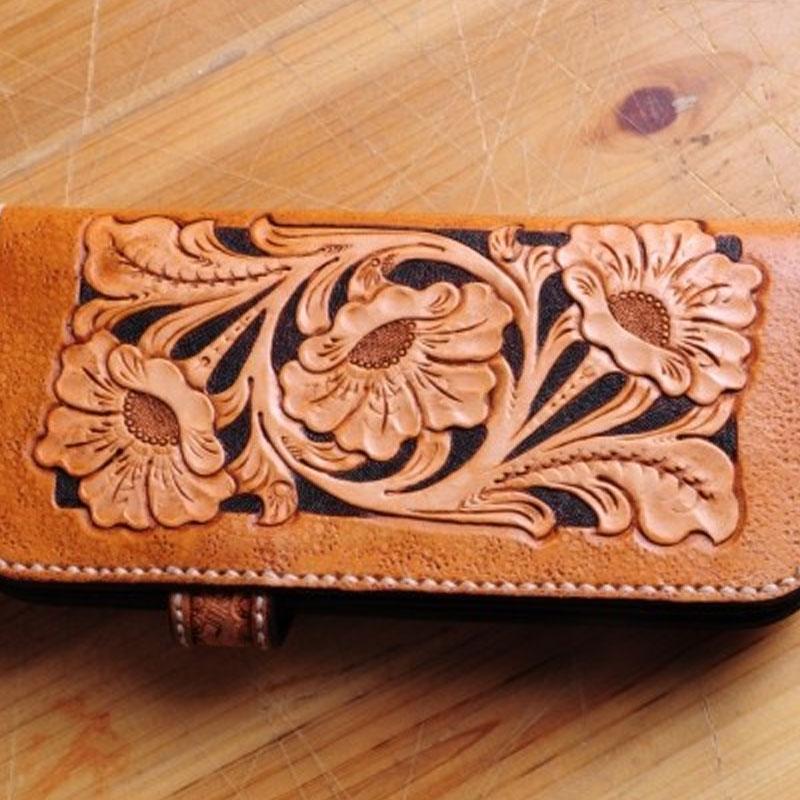 Design: Handmade Tooled Floral Mens Leather Long Biker Wallet Cool Long Chain Wallet for Men