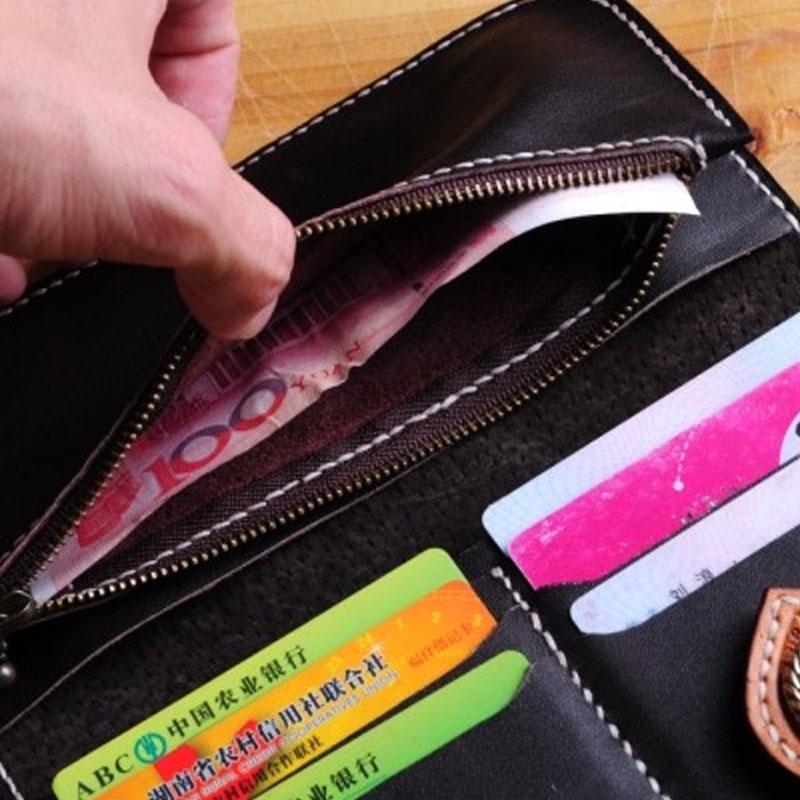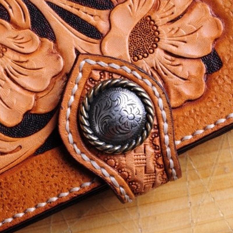 Style: Handmade Tooled Floral Mens Leather Long Biker Wallet Cool Long Chain Wallet for Men