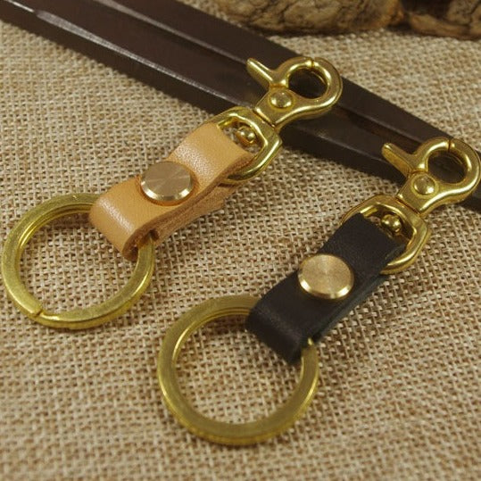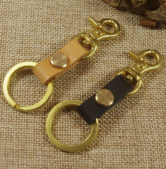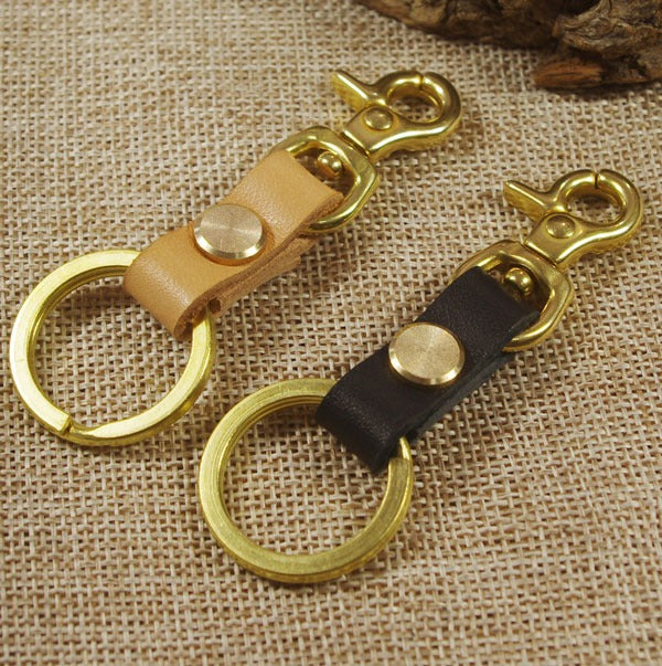 Leather Brass Keychain Key Holders Handmade Leather Brass Key Ring for Men