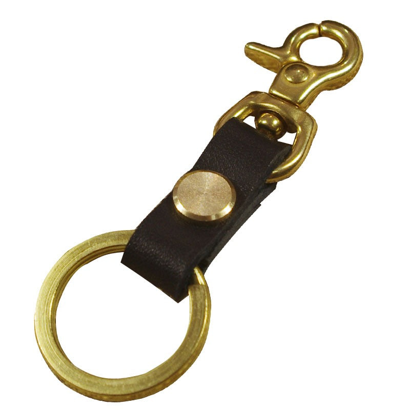 Style: Black Leather Brass Keychain Key Holders Handmade Leather Brass Key Ring for
