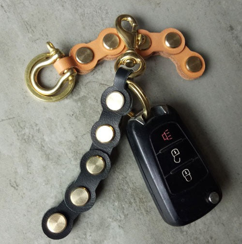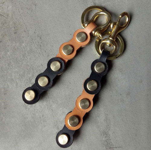 Style: Leather Chain Brass Keychain Key Holders Handmade Leather Brass Key Ring for Men