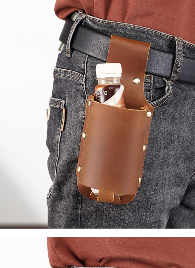 Style: Leather Water Bottle Belt Holder Pouch Leather Drink Bottle Belt Holder Leather Belt Water Bottle Holder