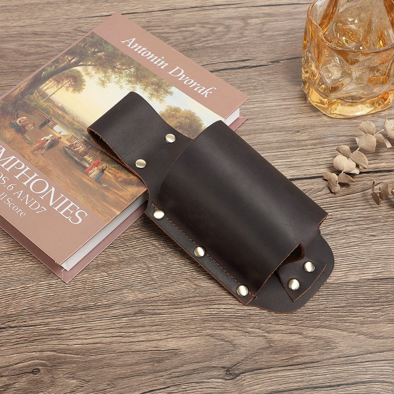 With dimensions of 22cm x 9cm x 8cm, it accommodates most standard-sized bottles and containers, offering universal practicality. Whether for personal use or as a thoughtful gift, this functional and handsome leather pouch combines utility with classic style.