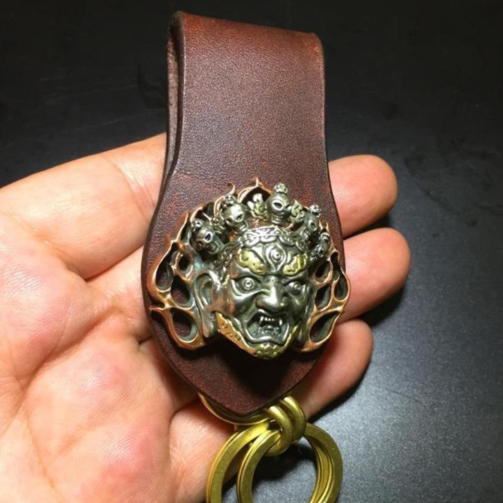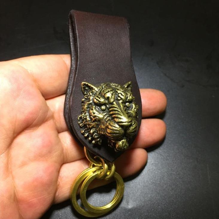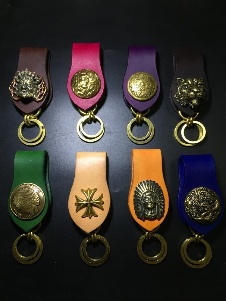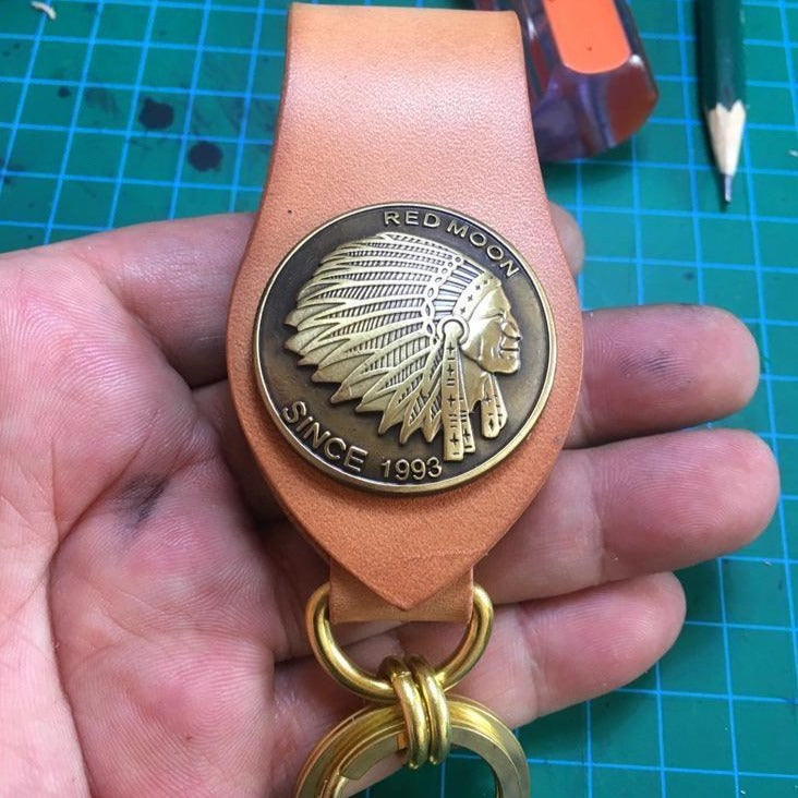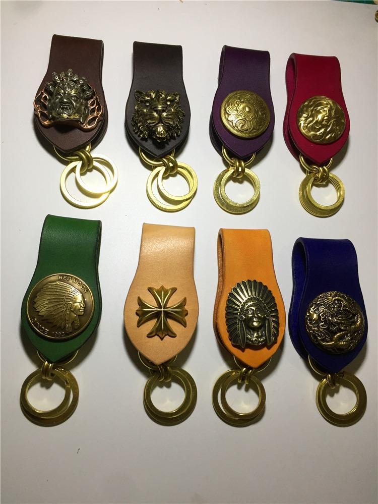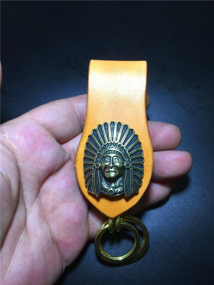 Moto Leather Brass Keyring Biker KeyChain Beige Indian Leather Keyring Moto Key Holders Key Chain Key Ring for Men