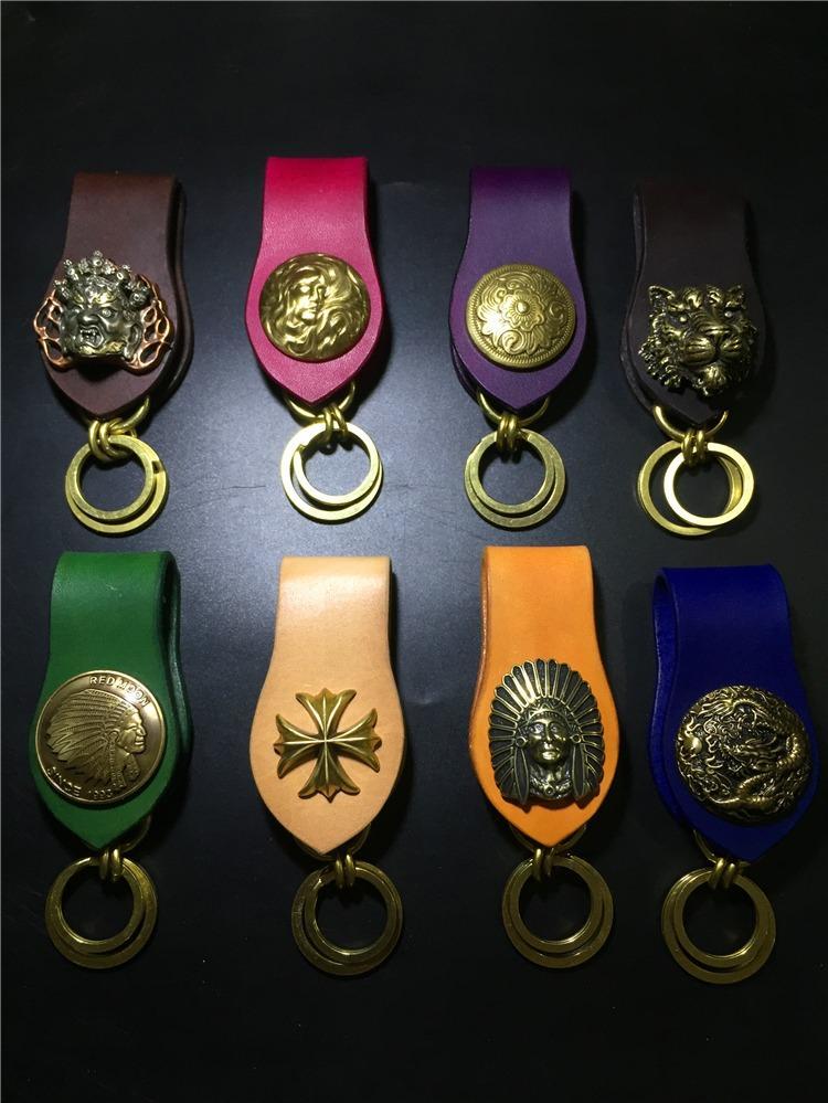 Style: Moto Leather Brass Keyring Biker KeyChain Green Indian Leather Keyring Moto Key Holders Key Chain Key Ring for Men