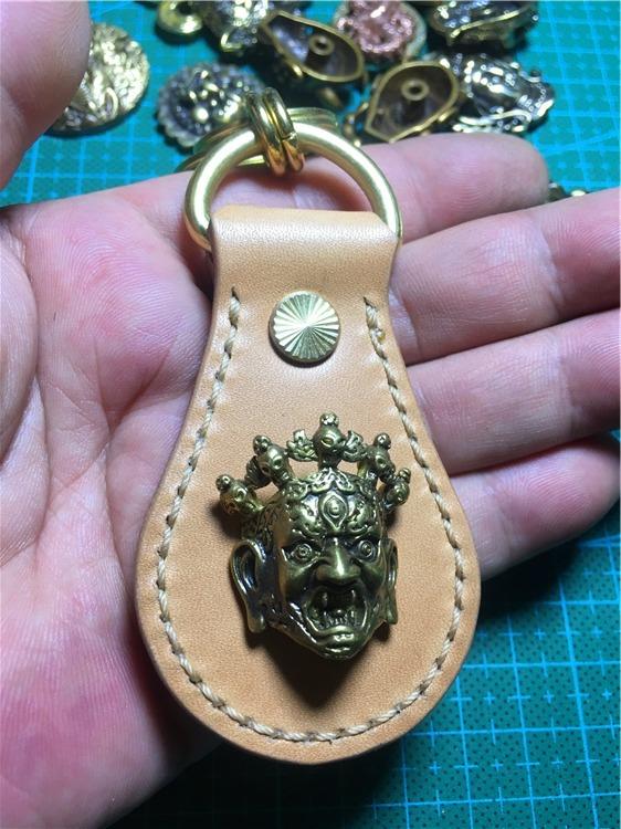 Moto Leather&Brass Keyrings Biker KeyChain Dragon Leather Keyring Beige Moto Key Holders Key Chain Key Ring for Men