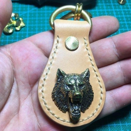 Design: Moto Leather&Brass Keyrings Biker KeyChain Leather Keyring Beige Moto Key Holders Key Chain Key Ring for Men