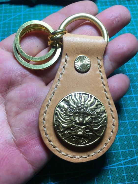 Moto Leather&Brass Keyrings Biker KeyChain Tiger Leather Keyring Beige Moto Key Holders Key Chain Key Ring for Men