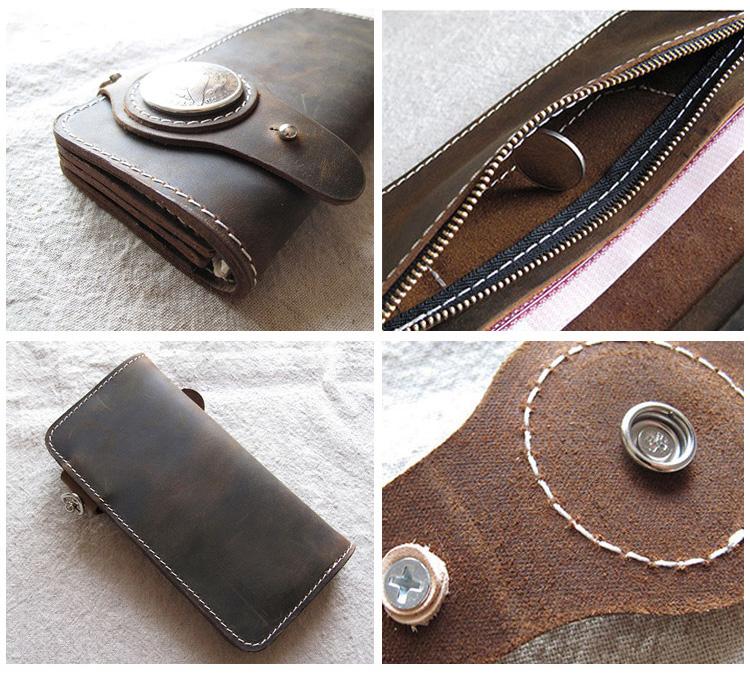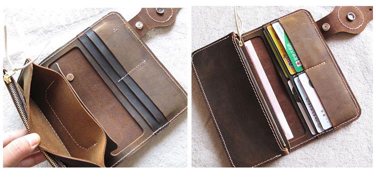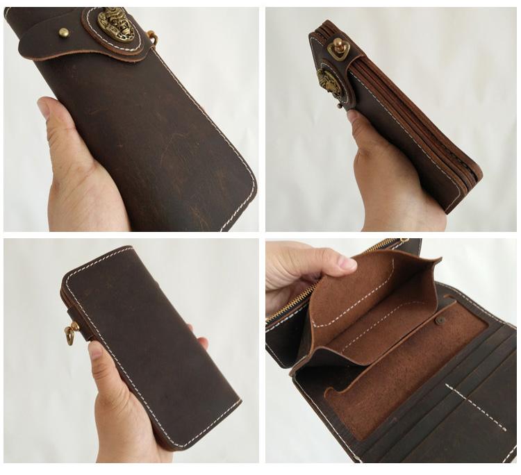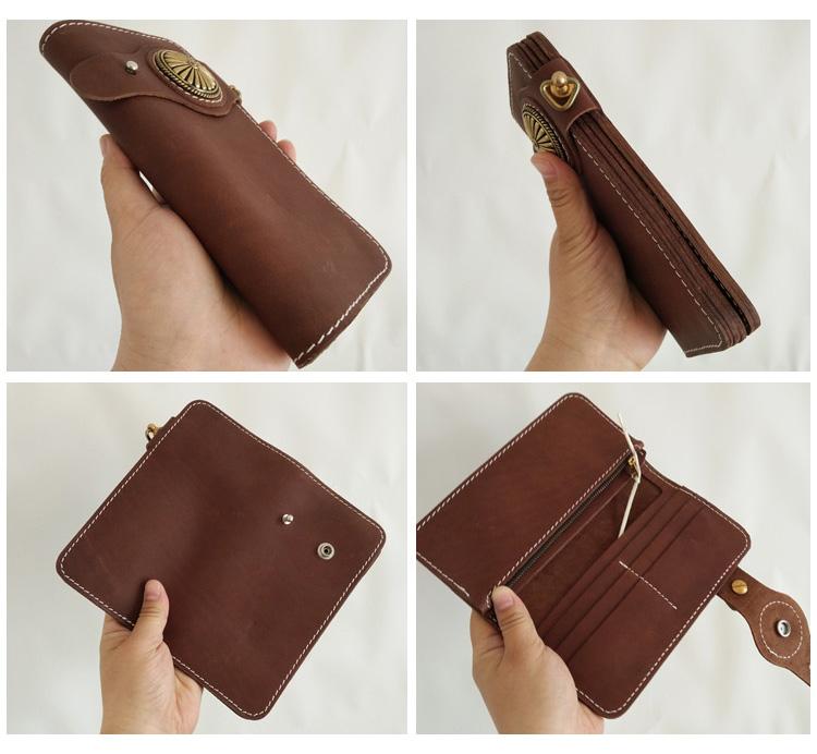 [On Sale] Handmade Mens Long Biker Wallet with Chain Cool Leather Biker Chain Wallets