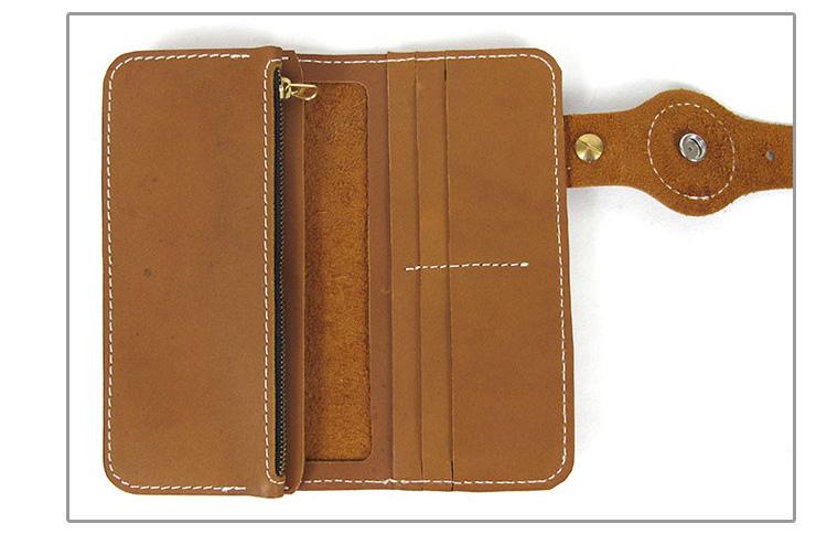 Style: Handmade Beige Long Biker Wallet with Chain Cool Mens Leather Biker Chain Wallet
