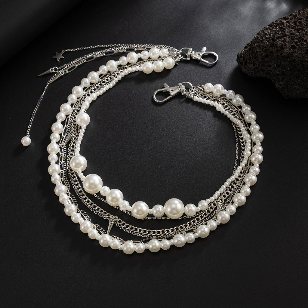 Designed for impact and versatility, this Layered Wallet Chain harmonizes the soft elegance of pearls with the industrial edge of alloy chains, while the tassels add a dynamic, handcrafted touch. The varying lengths, textures, and materials create a sense of movement and depth, ensuring the piece catches the light and draws the eye from every angle. Lightweight yet substantial, it’s built for confident wear and transitions effortlessly from punk and rock concerts to smart-casual ensembles and everyday street style. Whether you're making a statement at a festival or elevating a casual outfit, this chain delivers a look that is curated, fearless, and unforgettable.