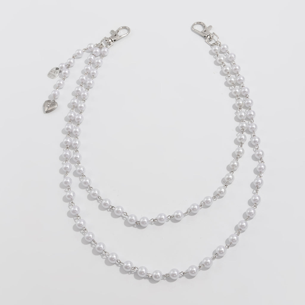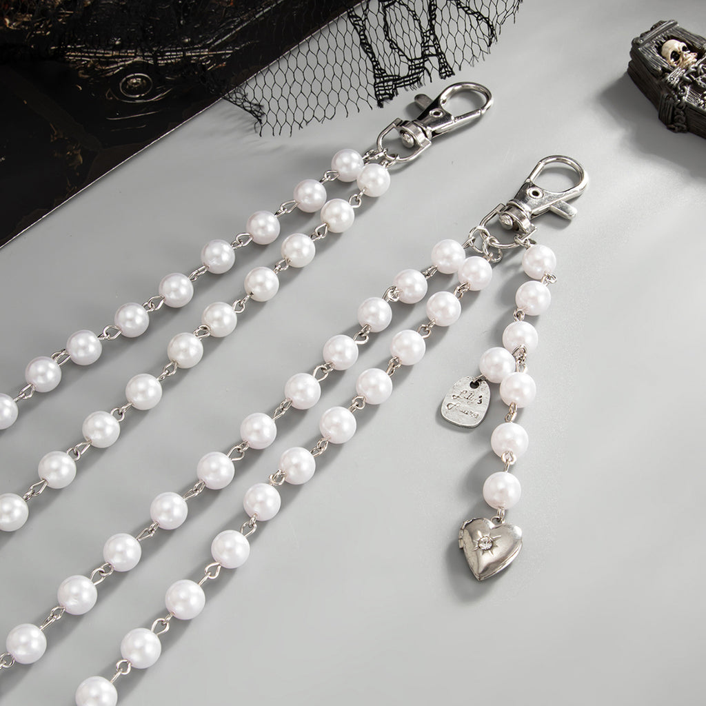 Discover the perfect introduction to alternative accessories with our enchanting Pearl Wallet Chain, a beautifully crafted piece designed specifically for fashion-forward women. This exquisite Women Wallet Chain features a graceful dual-layer design with 62cm and 52cm strands of lustrous faux pearls, creating a captivating cascading effect. The charming addition of a shorter chain with a delicate heart-shaped pendant near the clasp adds a touch of romantic femininity to this versatile Ball Wallet Chain, making it an ideal choice for those new to wallet chains or seasoned enthusiasts alike.