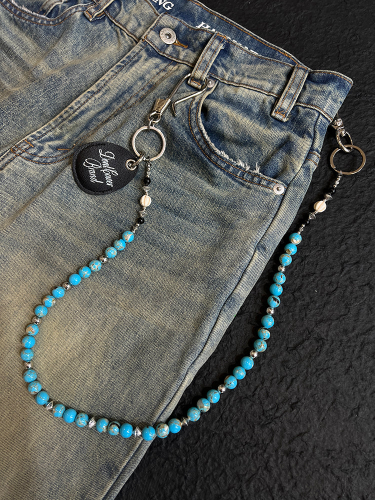The delicate balance of colorful synthetic turquoise and sleek alloy beads makes this Ball Wallet Chain truly special. Whether you're dressing up for a special occasion or adding interest to your daily attire, this chain brings a unique touch of elegance and personality.