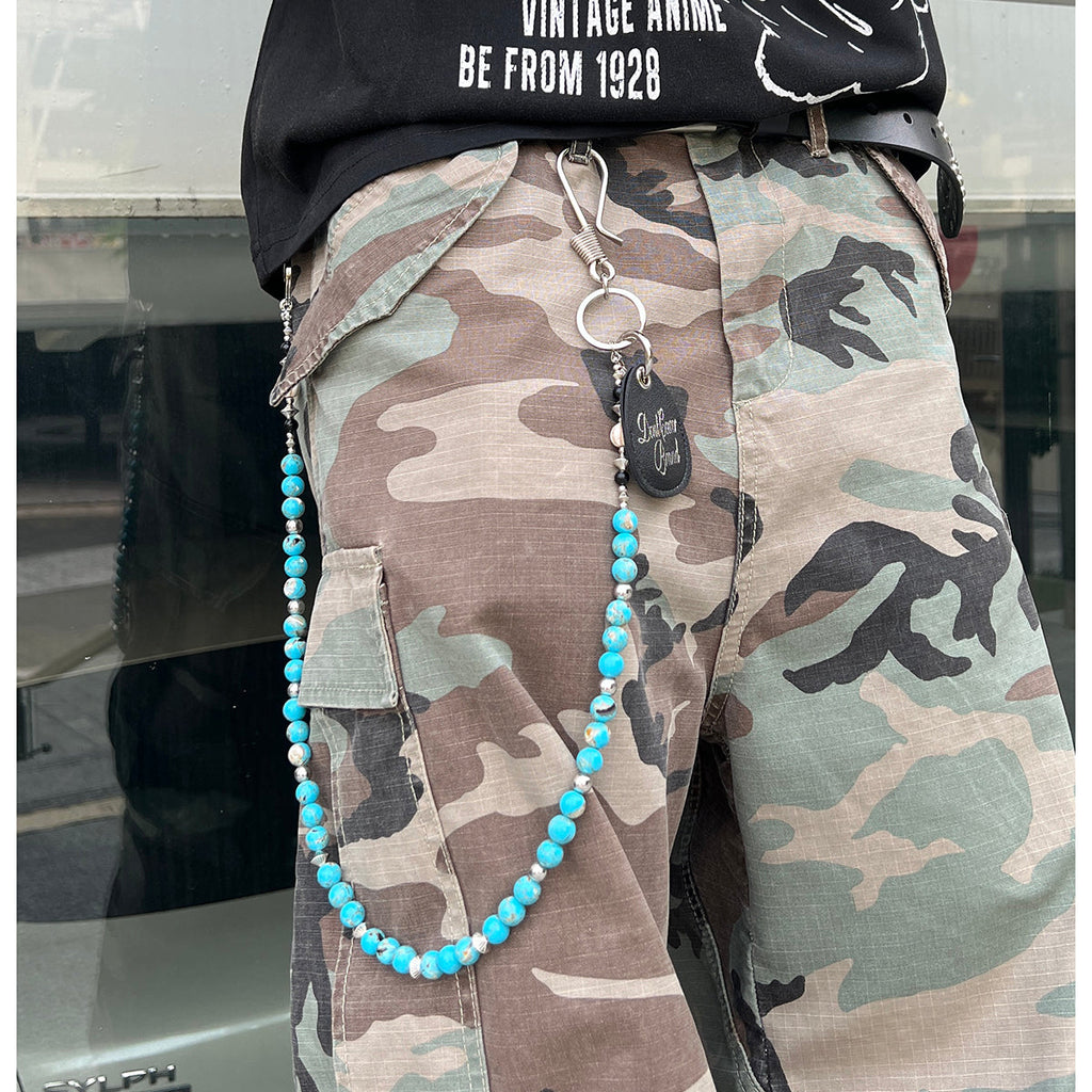 Style: Blue Green Ball Wallet Chain Ball Pants Chain Turquoise Stone Beaded