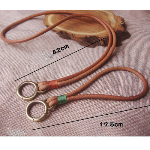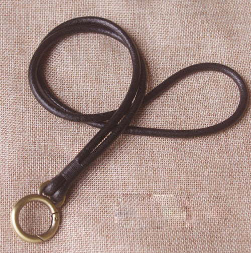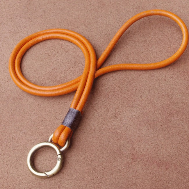 Style: Black Leather Lanyards for Id Badge Handmade Leather Keychain Key Ring